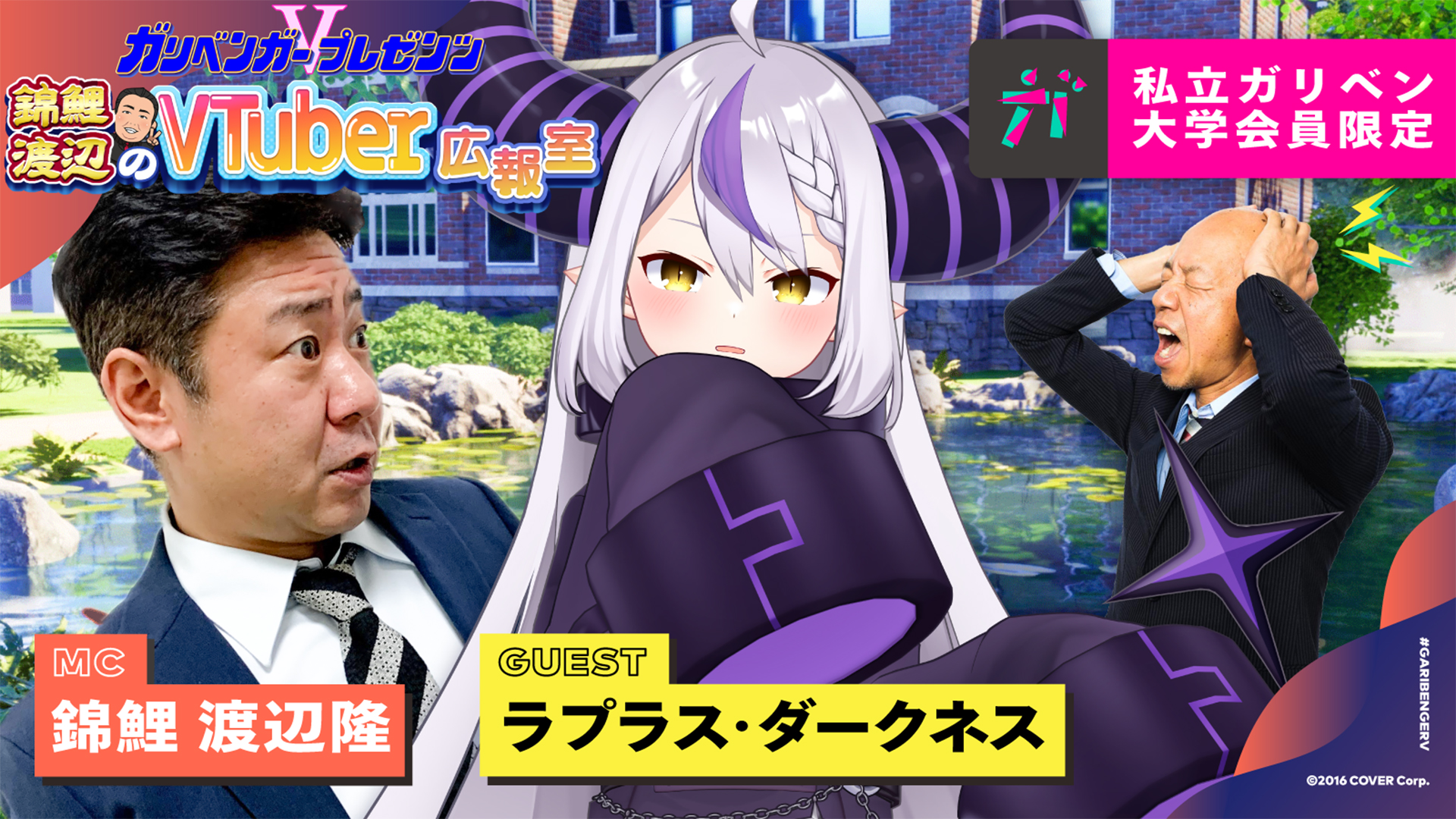 ラプラスダークネス(La+ Darknesss、5月25日 - )は、日本のバーチャルYouTuber、バーチャルアイドル。所属事務所はホロライブプロダクションで、同事務所の女性バーチャルYouTuberグループ・ホロライブの6期生「秘密結社holoX」を統べる総帥。愛称は「ラプ